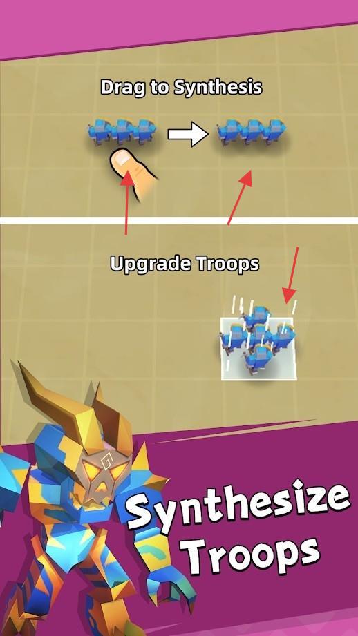 2、在合成界面,拖动相同部队(如蓝色单位),按“Dragtoynthesis”操作,升级部队提升战力。
