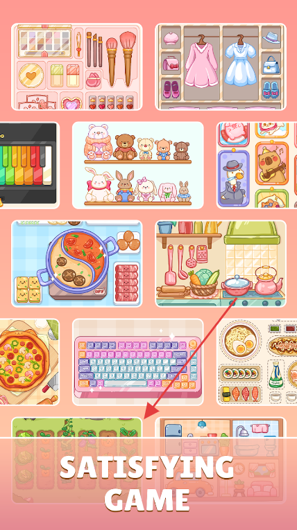 3、多元模式体验:尝试烹饪模式制作美食,化妆模式打造个性造型,宠物护理模式照顾小动物,让玩家在多元体验中感受不同生活场景的整理乐趣与挑战。