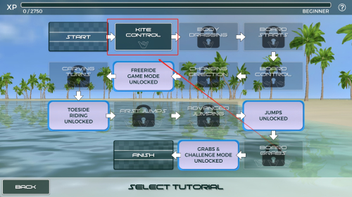 1、轻触开始按钮进入游戏主界面,开启刺激的风筝冲浪冒险之旅。