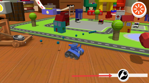 1、点击红色播放按钮,进入《疯狂坦克城》,操控蓝色坦克,在玩具场景开启冒险。