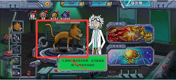 1、进入游戏后,我们在实验室里获得了变异兽,需要把它变为最强的变异兽。