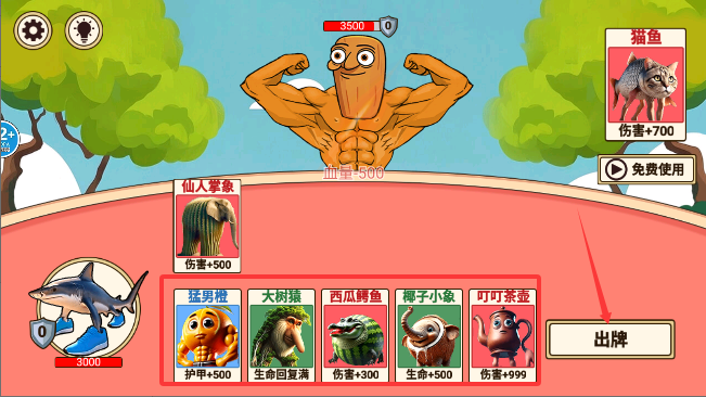 3、开始游戏后,在下方选择一张卡,对敌人进行攻击。