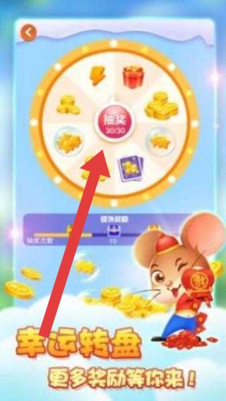 2、进入幸运转盘,点击【抽奖】按钮,消耗次数(如30/30),抽取金币、道具等奖励,助力游戏进程。