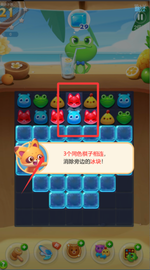 1、进入游戏后先熟悉三消操作,通过交换相邻元素完成消除。
