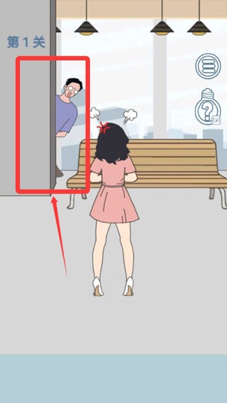 1、第1关是教程关卡,在右侧找到露出一只脚的老公。