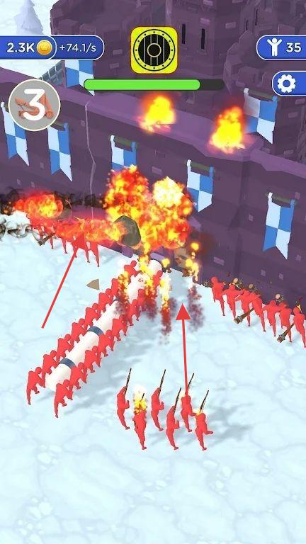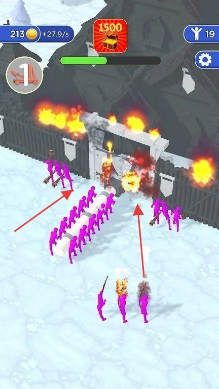 放置攻城锤是一款以策略攻城为核心的休闲竞技作品,玩家将操控战斗团队展开攻城挑战,在丰富关卡中根据不同场景设计评估阵容、搭配小兵,结合地形要素制定策略,通过合理布局攻城武器与兵力分配,体验极具策略性的攻城对决,感受击溃敌方防线的成就感。