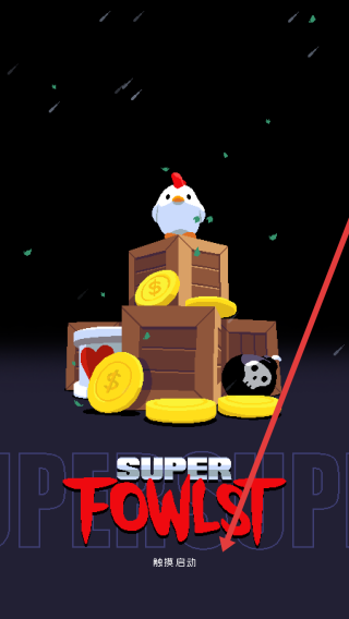 1、点击【触摸启动】,进入《Super-Fowlst》,操控小鸡,准备在黑暗森林场景展开冒险。
