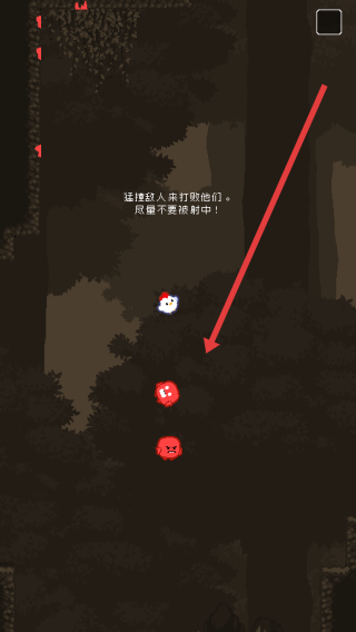 3、遇到红色敌人,操控小鸡撞击(“碰撞敌人来打败他们”),注意躲避,避免被敌人击中,推进关卡。