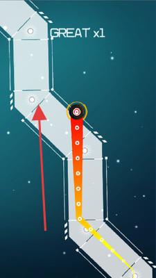 1、触屏旋转操作体验:点击屏幕即可操控小球旋转前行,简单触屏操作下隐藏精准度考验,需在旋转中保持小球沿音乐线条移动,兼顾操作爽感与策略性,上手易精通难。