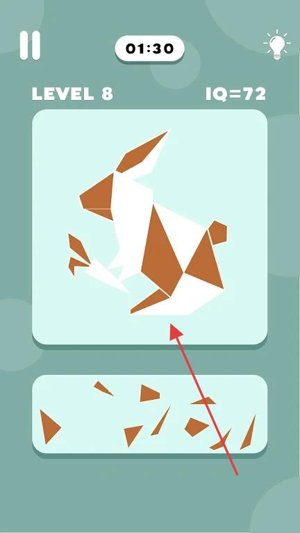 Tangram Shape Puzzle是一款以传统七巧板为核心玩法的休闲益智游戏,玩家需将七个基本几何板块(三角形、正方形、平行四边形)组合成目标图案,游戏采用清新简约的界面设计,结合现代动画效果,提供超过100个精心设计的关卡,从简单的基础形状到复杂的人物、动物、物品造型,满足不同难度需求。