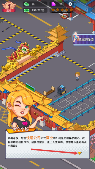 1、点击钻石:在场景中点击右上角钻石图标,触发秘书指引。