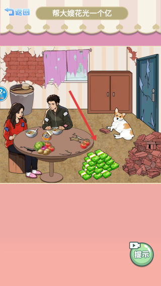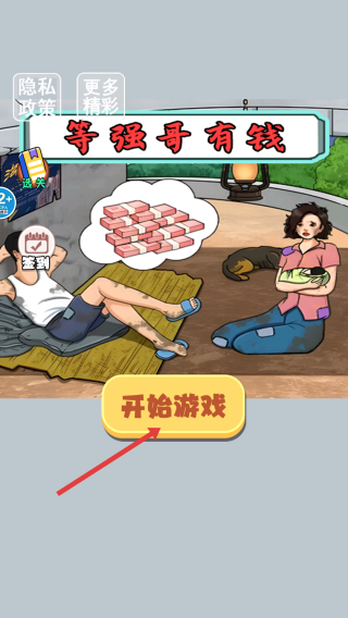 1、启动游戏:点击等强哥有钱主界面“开始游戏”,进入“帮大嫂花光一个亿”关卡。