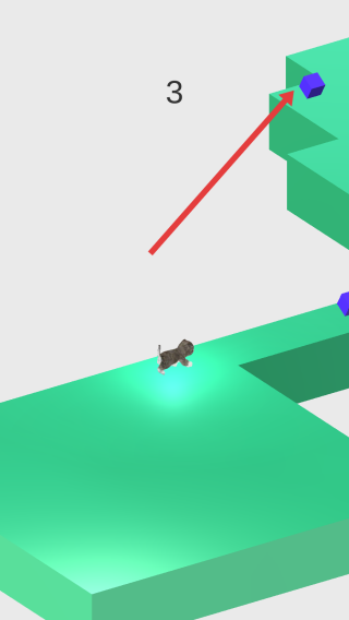 2、持续移动(红箭头指向),需要尽可能多收集方块,提升得分,挑战更高存活时长。