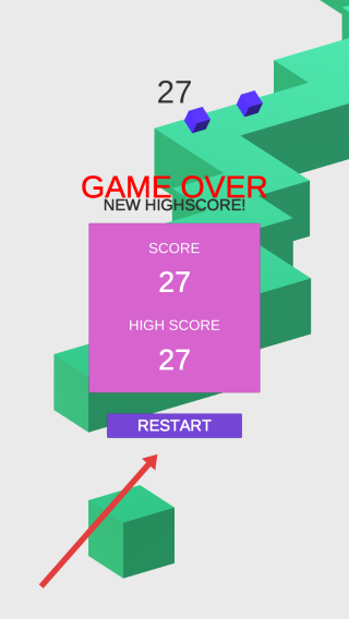 3、游戏结束,点击【RESTART】(红箭头指向),重新开始,刷新高分记录,体验闯关乐趣。