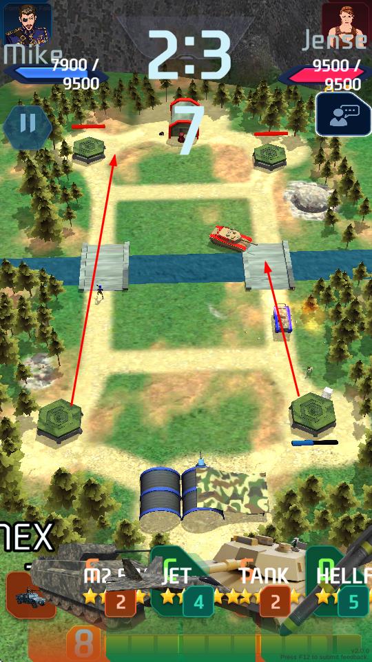 3、实战时,部署坦克、士兵等单位,沿地图推进,占领据点、摧毁敌方单位,争夺胜利。