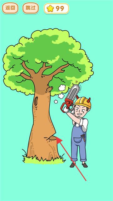 2、第二关,面对砍树场景,点击树或人物,触发解谜,阻止或完成砍树,推进关卡。
