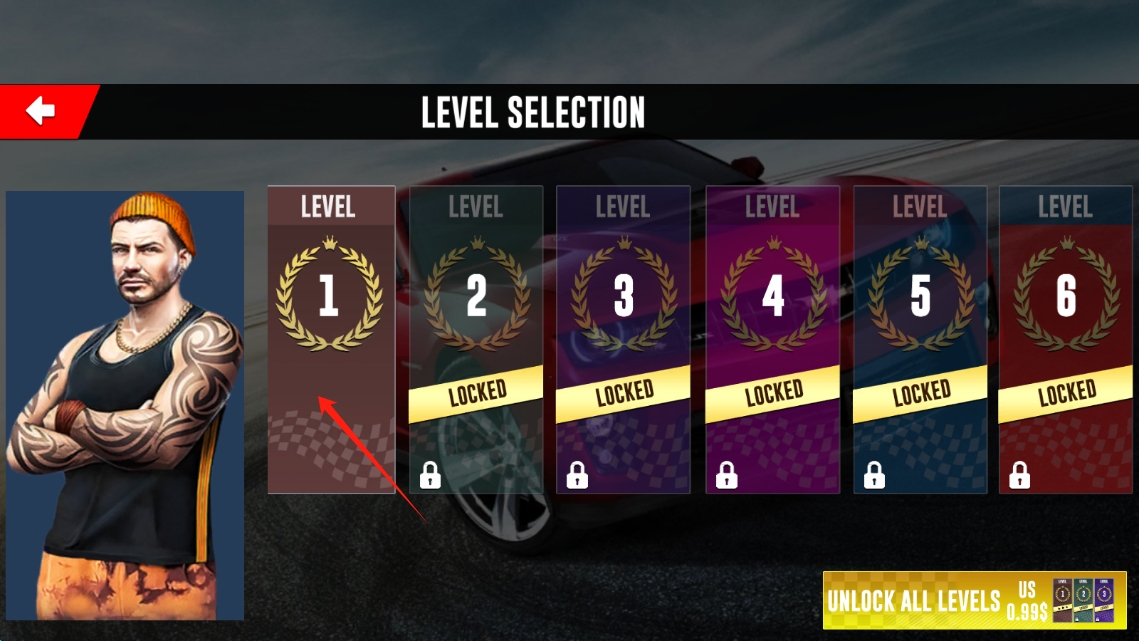 2、选择关卡,可能用于解锁特殊车辆形态,利用每日登录奖励获取免费改装与加速解锁。