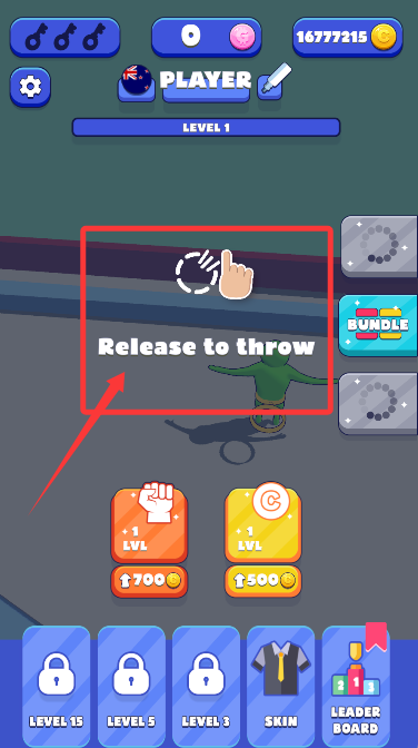 1、启动游戏,通过初始界面"Release to throw"操作指示,可投掷道具攻击怪物。
