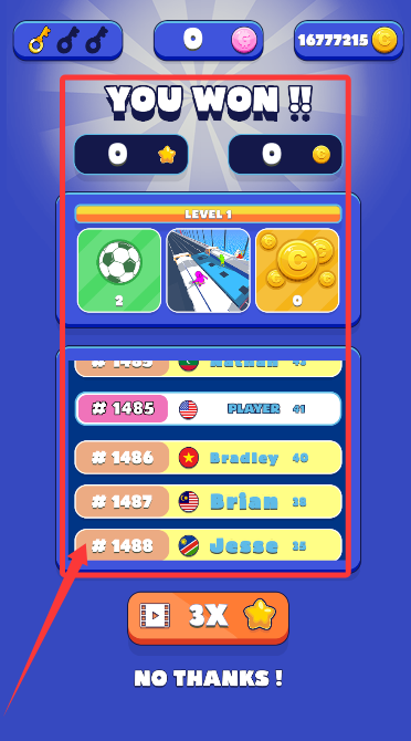 3、成功通关后会显示胜利界面和获得分数,可选择继续挑战开启新的对局。