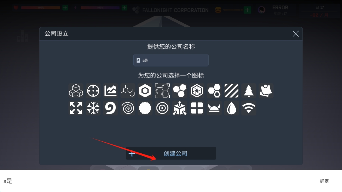 1、点击创建公司,利用连续成功升级触发"商业直觉"状态,通过设置自动投资功能解放双手。