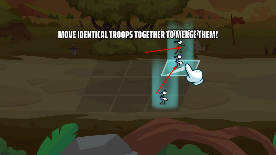 2、战斗中,拖动相同火柴人(如蓝色)合并,提升部队等级,增强战力,应对更强敌人。