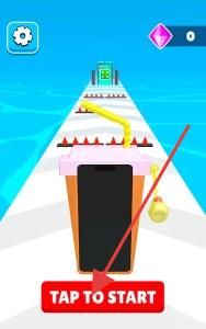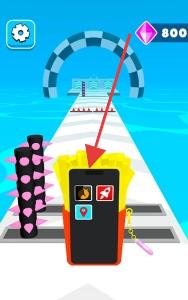 1、进入游戏后,选择初始手机角色开始跑酷,点击屏幕控制跳跃、滑行躲避障碍物,触碰沿途道具自动收集。