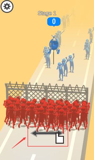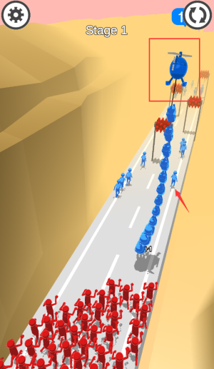 2、点击红框直升机空投道具,协助蓝人队伍前进。