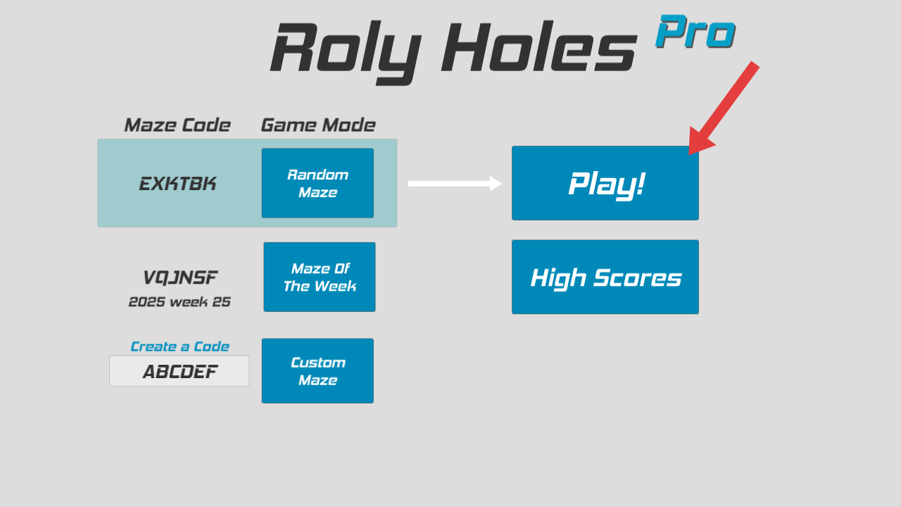 1、进入滚洞游戏的主界面,可以选择迷宫模式(如【Random Maze】),点击【Play】开启迷宫冒险。