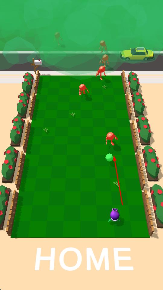 1、在草坪战场,长按拖动使左右移动,调整弹射角度与力度,瞄准红色怪物。