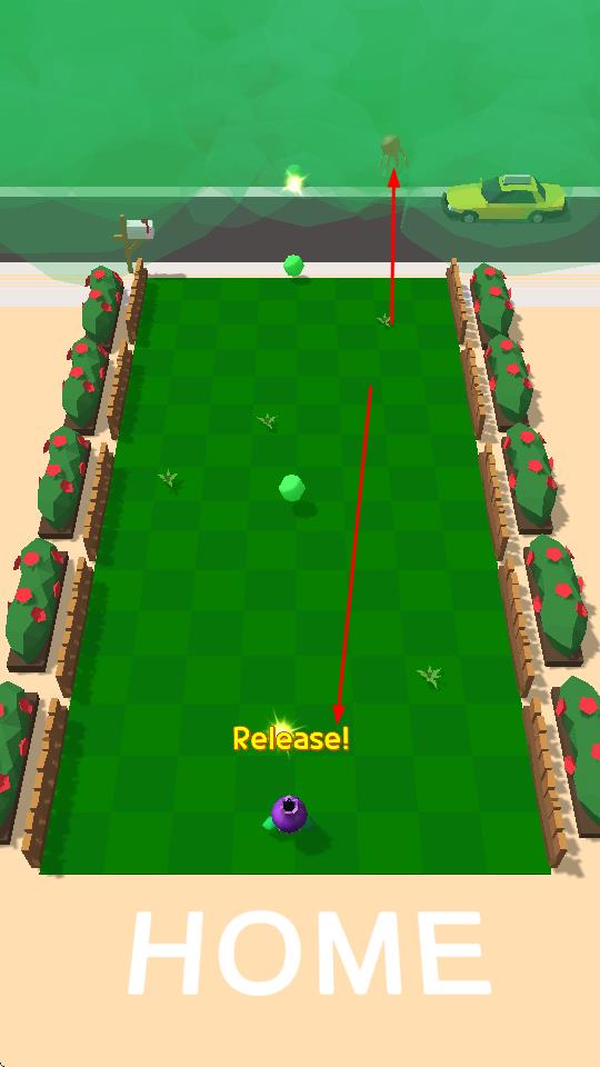 2、松开手指发射绿色球体,利用弹射轨迹,击中怪物,清除场上敌人。