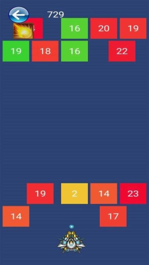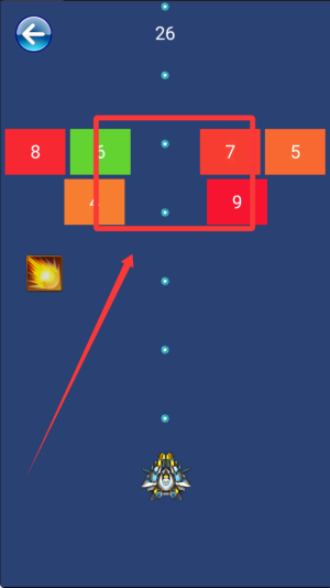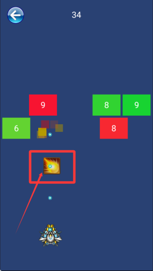 1、玩家需要控制飞行器在屏幕中移动,瞄准并射击数字方块,通过消除相同颜色的方块组来获得分数和过关。