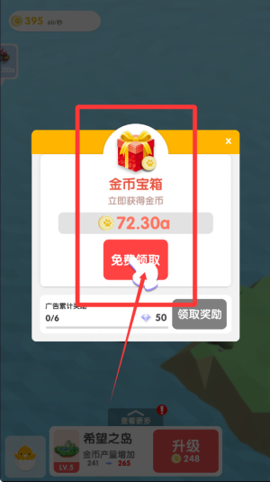 2、玩家可以通过升级岛屿获得显著收益提升,每次升级都会带来新的视觉变化和更丰厚的金币回报。