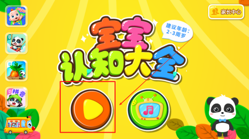 1、轻触屏幕中央启动游戏,带领宝宝开启认知学习之旅。