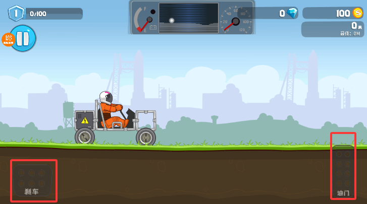2、左下角控制车辆前后移动,右下角油门控制车辆加速减速。
