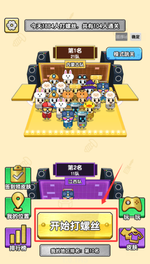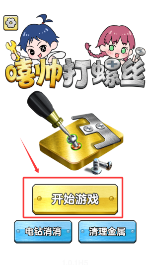 1、点击红框开始游戏按钮,进入嘻帅打螺丝挑战。