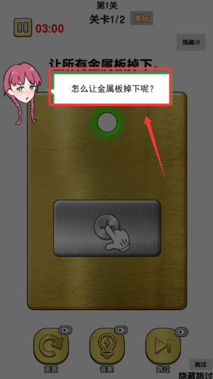3、点击红框金属按钮,完成让金属板掉落任务。
