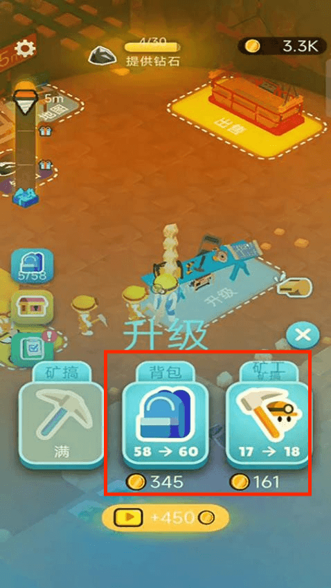 2、矿石换到的金币还可以升级设施等级,等级越高效率越快。