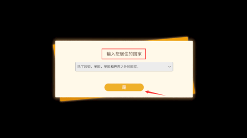 1、点击红箭头指向的"是"按钮,确认国家选择。