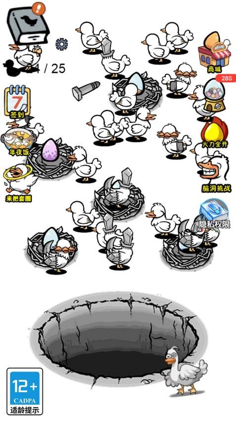 1、创新基因融合系统让每颗鸭蛋都充满未知可能,黑洞孵化技术可产生300+奇异变种,从普通家鸭到机械战鸭应有尽有。