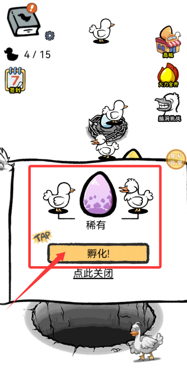 2、需连续孵化触发系统机制才能获得稀有鸭子,将逐步地解锁种类图鉴。