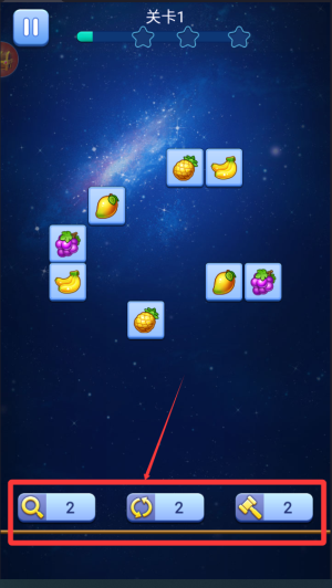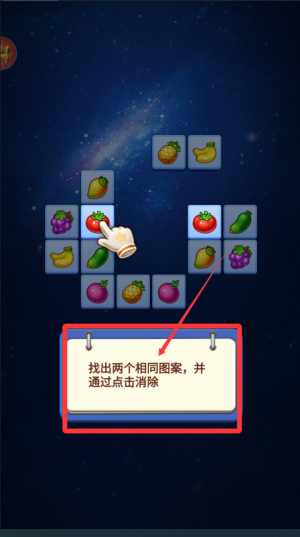 1、玩家需要通过手指连接两个相同的水果,在限定步数内完成消除任务,顺利进入下一关卡,考验策略思维和操作技巧。