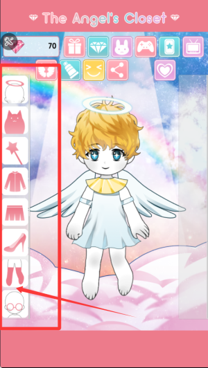 2、在衣橱系统中,玩家可以自由搭配各种服饰,包括上衣、裙子、鞋子、头饰等,创造出符合自己审美的天使造型。