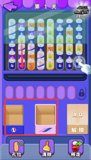1、进入关卡后先观察仓库中饮料瓶的颜色分布,优先整理数量较多的颜色。将相同颜色的瓶子按要求装入纸盒,完成打包任务。