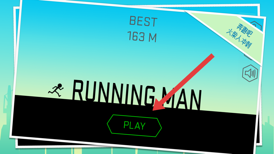 1、点击【PLAY】,开始游戏,操控火柴人在赛道奔跑,注意前方障碍(如悬空钢梁),及时躲避。