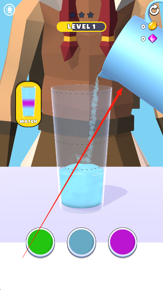 1、操作控制:点击屏幕选择果汁材料,滑动屏幕调整视角,长按屏幕执行特殊动作,通过组合不同操作完成复杂调配任务。
