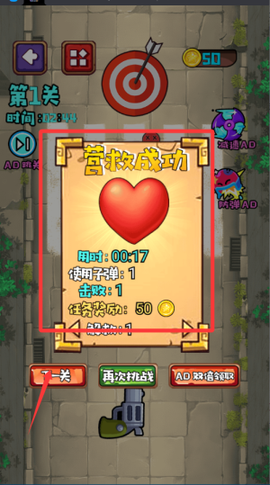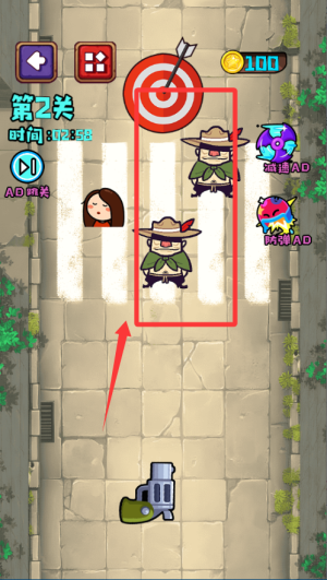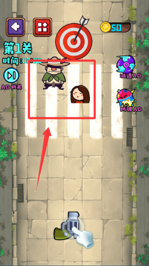 1、进入关卡后先观察匪徒和人质的位置分布,找到安全的发射角度再进行射击。