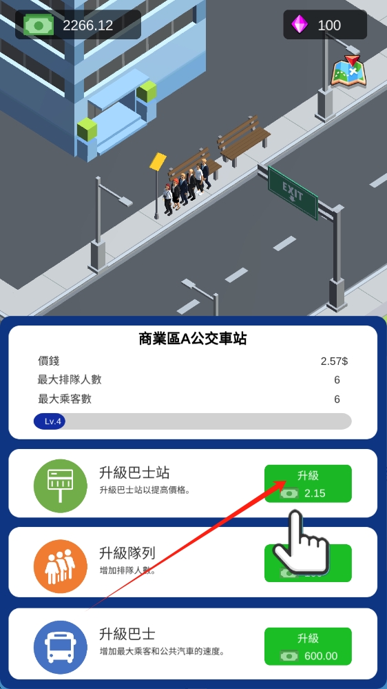 3、成长系统:通过完成运输获得经验值提升等级,解锁新巴士与路线,使用金币购买基础升级,钻石可购买高级功能与加速成长,支持观看广告免费获取随机资源。