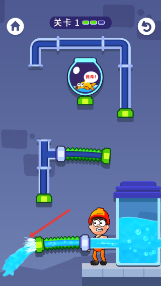 3、解决泄漏:调整水管,避免漏水,成功供水,完成关卡挑战。