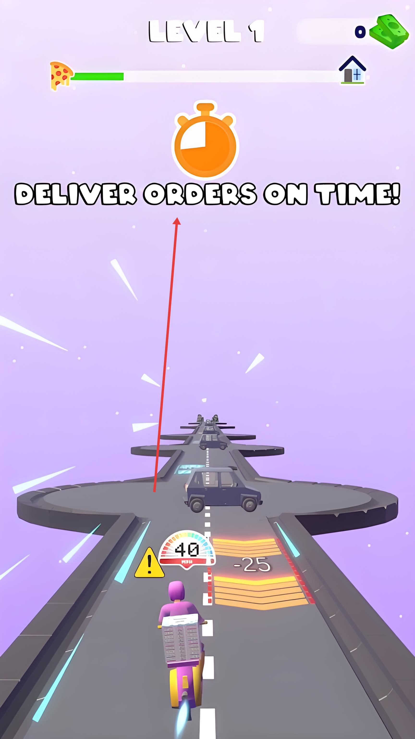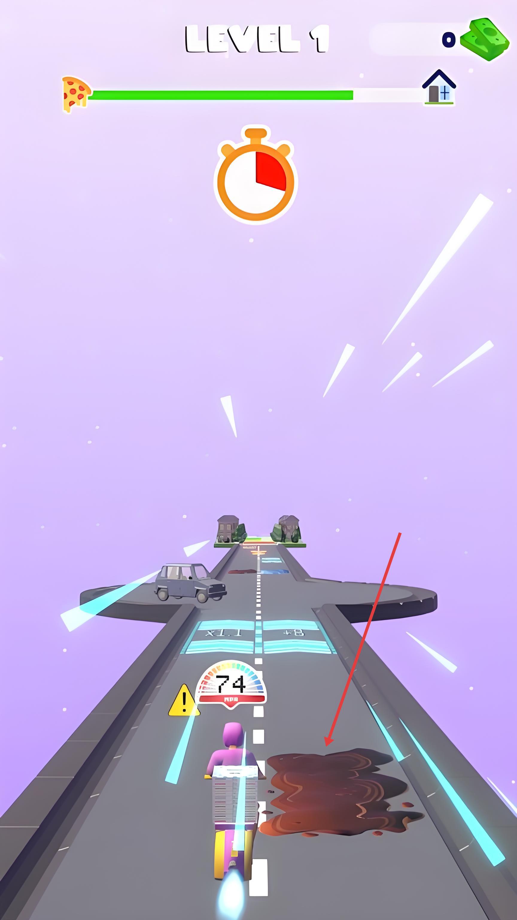 3、抵达终点前会触发“精准交付”挑战,需在滑动条区域内点击屏幕完成餐品递交,完美交付可获得双倍金币奖励,累计完成10单普通配送可解锁“暴雨加急”等特殊关卡。