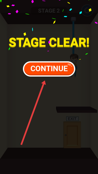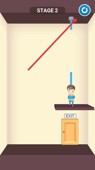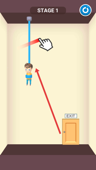 3、STAGE2中,观察箭头指向的顶部机关,切断绳索或移动物品,助角色到达EXIT,通关升级。